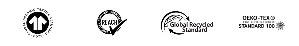 Bio-Baumwolle ist GOTS-zertifiziert. Recycelte Baumwolle und Polyester sind GRS-zertifiziert.